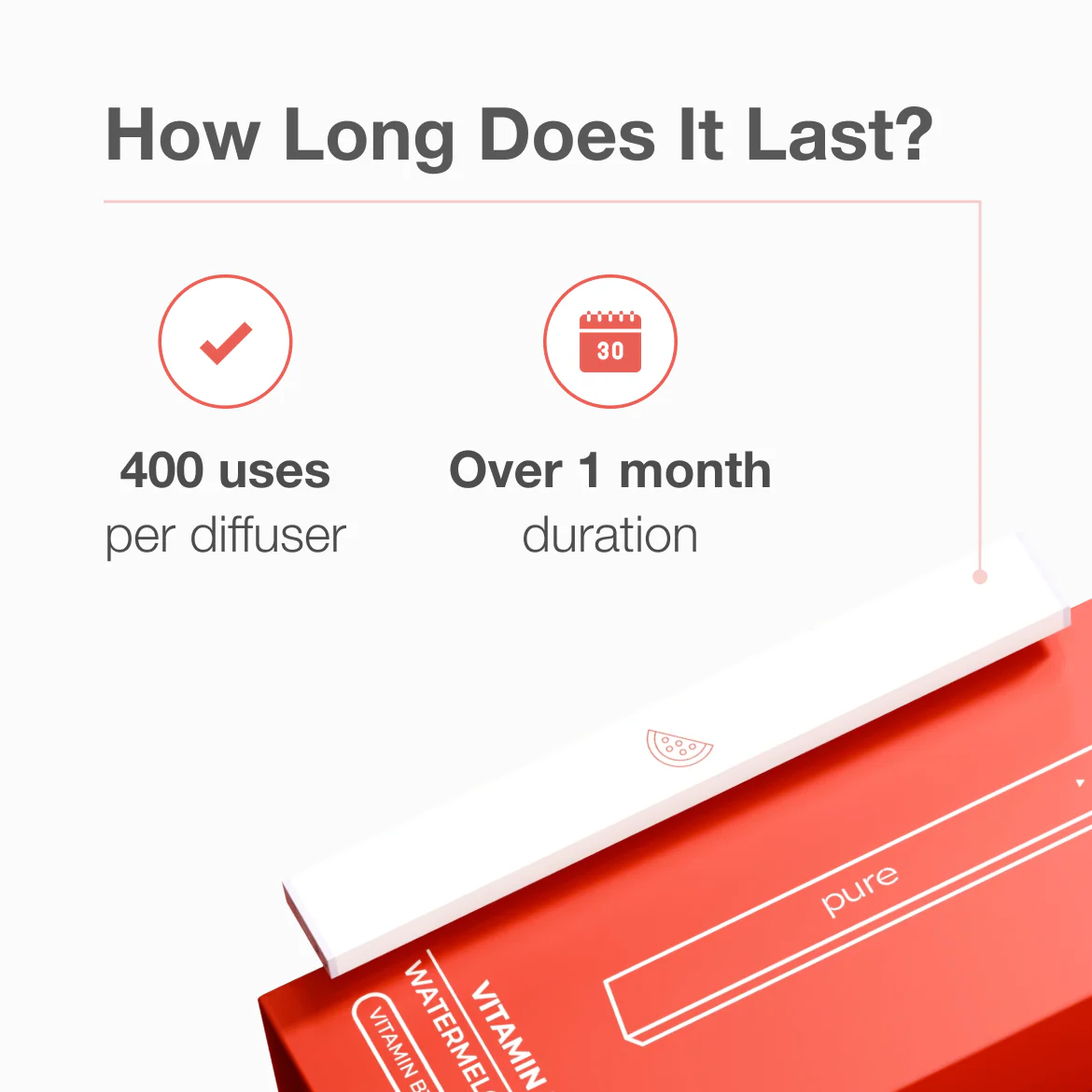 Pure Diffuser Plus makes it easy to recharge your energy, relax your mind, and maintain your health with convenient doses of caffeine, melatonin, and Vitamin B12.