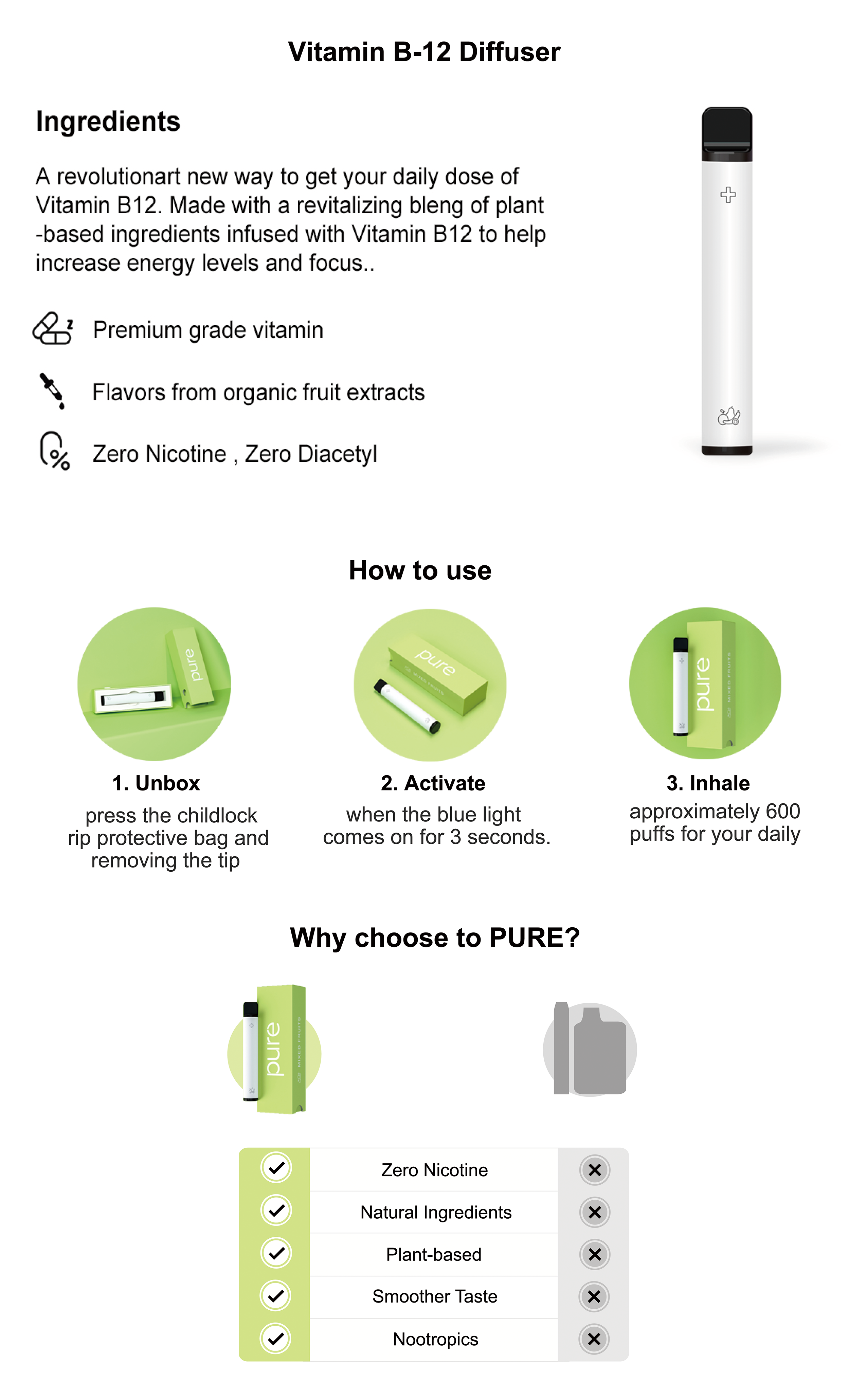 - No smoke, no nicotine, no guilt—just a vitamin vape done right